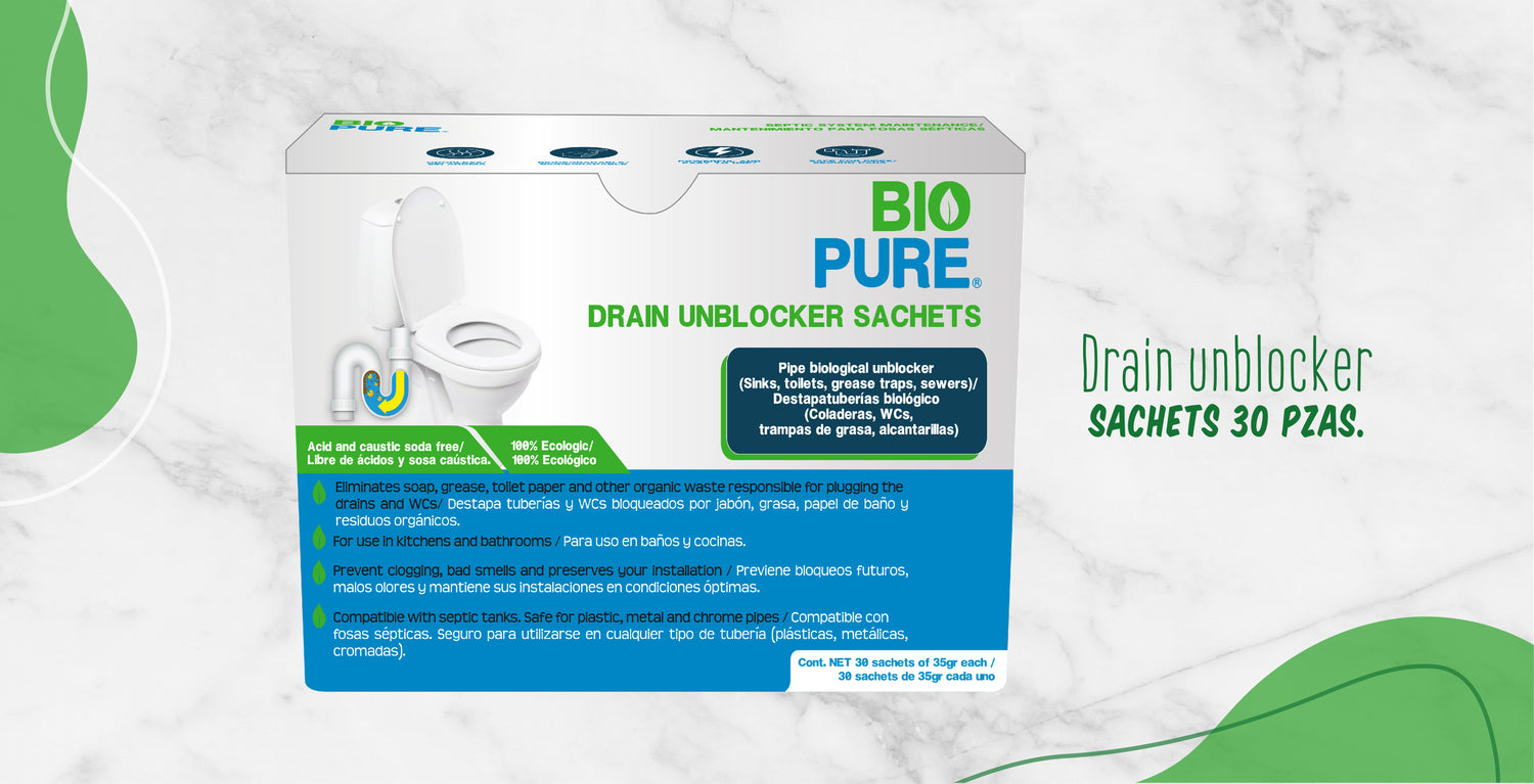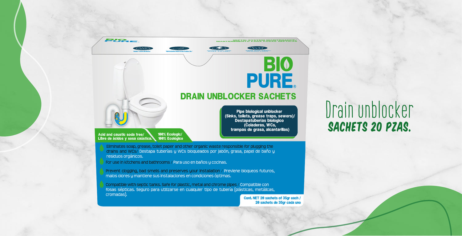 Tratamiento fosas sépticas - Sachets, Fórmula biológica, Ideal para WC, lavamanos, tuberías conectadas a una fosa séptica.