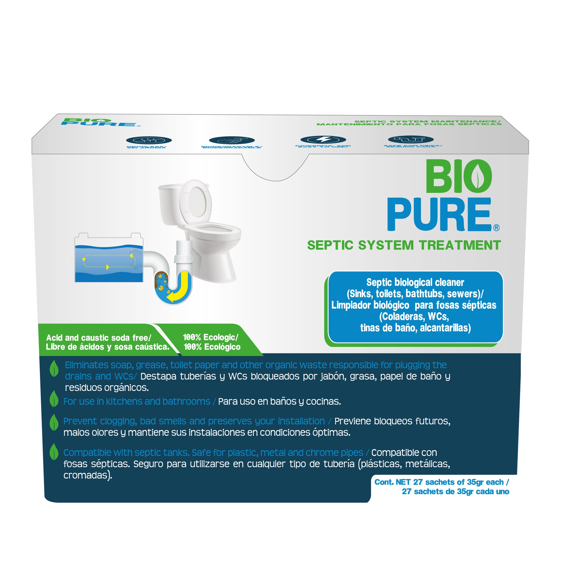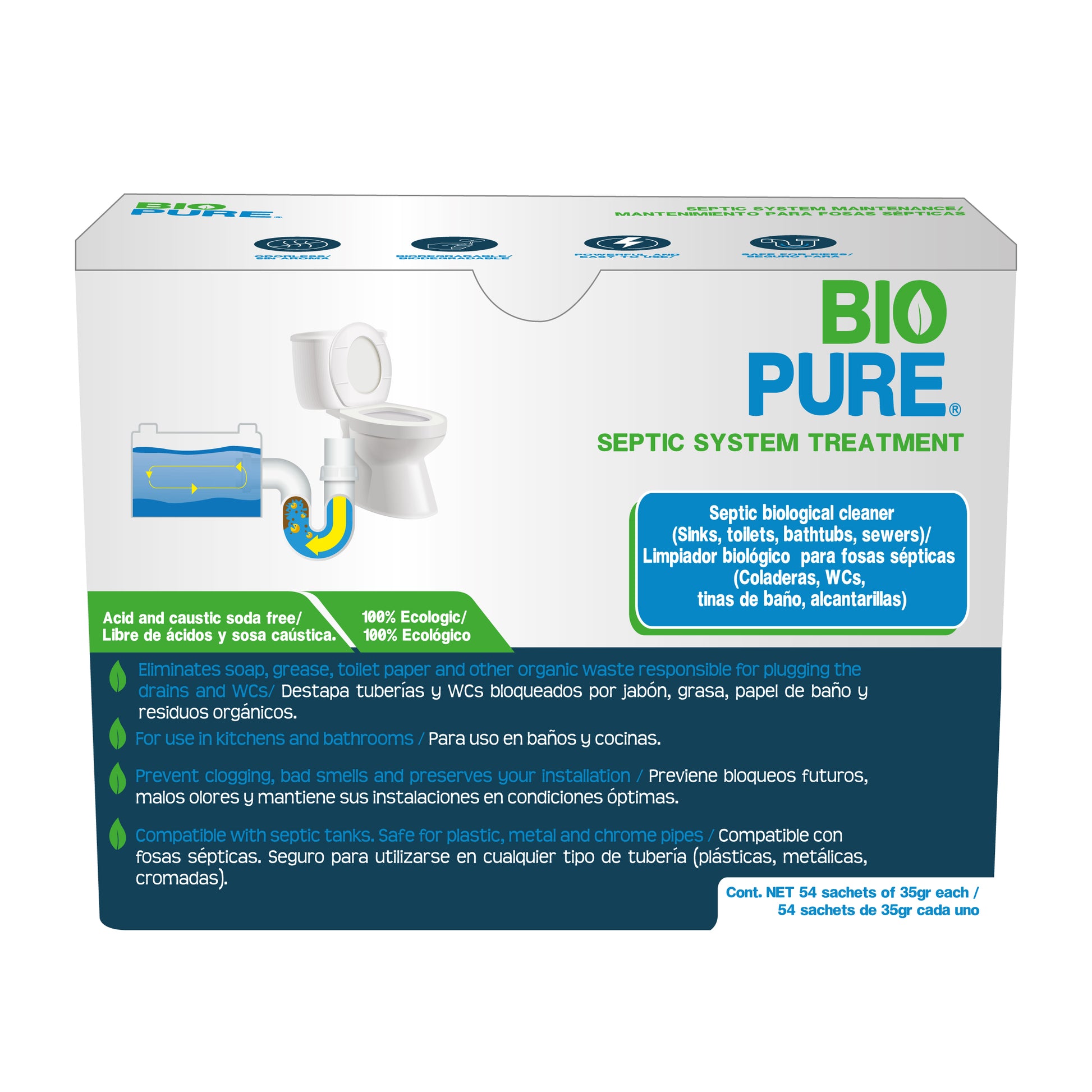 - IDEAL PARA WC , lavamanos, bañeras, tuberías que cuenten conectadas a tanque séptico.